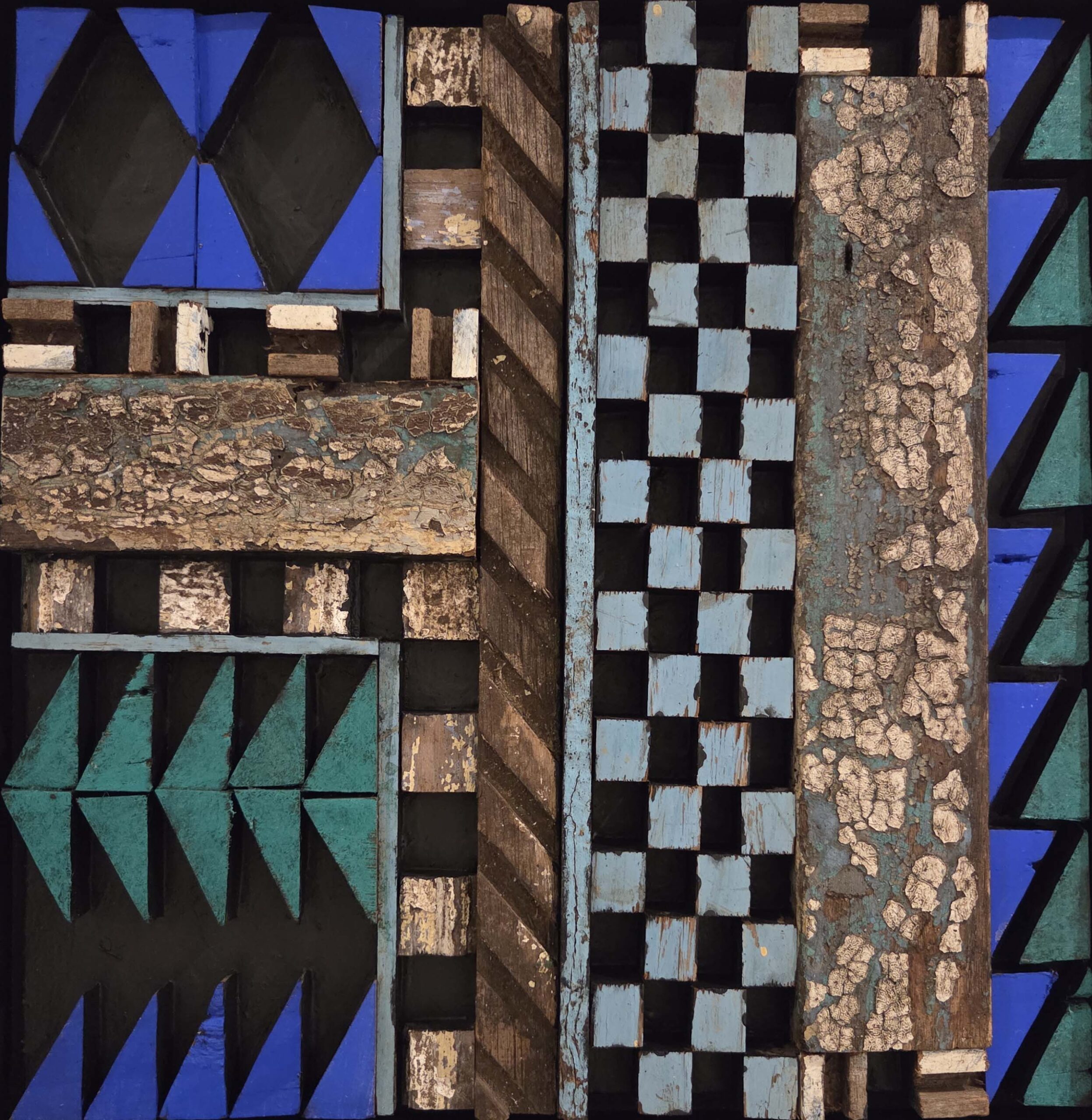 Essa vocação construtiva convive com uma dimensão teatral que não é mero ornamento, mas método. O artista que atua há décadas em diálogo com a cena, assinando participações no universo do Grupo Corpo, transfere para a pintura um entendimento de “presença” que vem do palco: cada elemento precisa justificar sua entrada, cada matéria precisa possuir timbre, cada cor precisa cumprir função, como luz numa coreografia. Por isso, muitas peças soam como cenários condensados: não porque representem um lugar, mas porque instauram um regime de atenção, uma atmosfera de acontecimento.